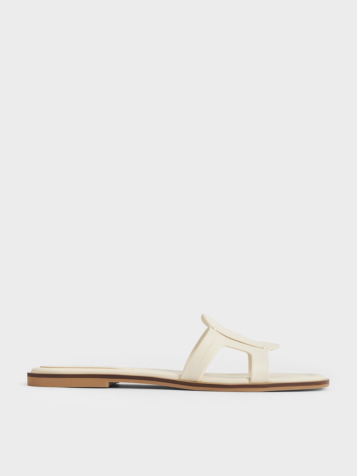 Update your sandals rotation with this easy-wearing yet standout pair. Cut-outs on the straps give the classic slip-on format a distinctive appeal, and also provides breathability on extra humid days. In crisp chalk, these sandals will polish up your ensembles and match well with the linen textures you will be wearing on repeat this season. With the added bonus of comfortable, flat soles, you can wear this pair all-day long, for any occasion.