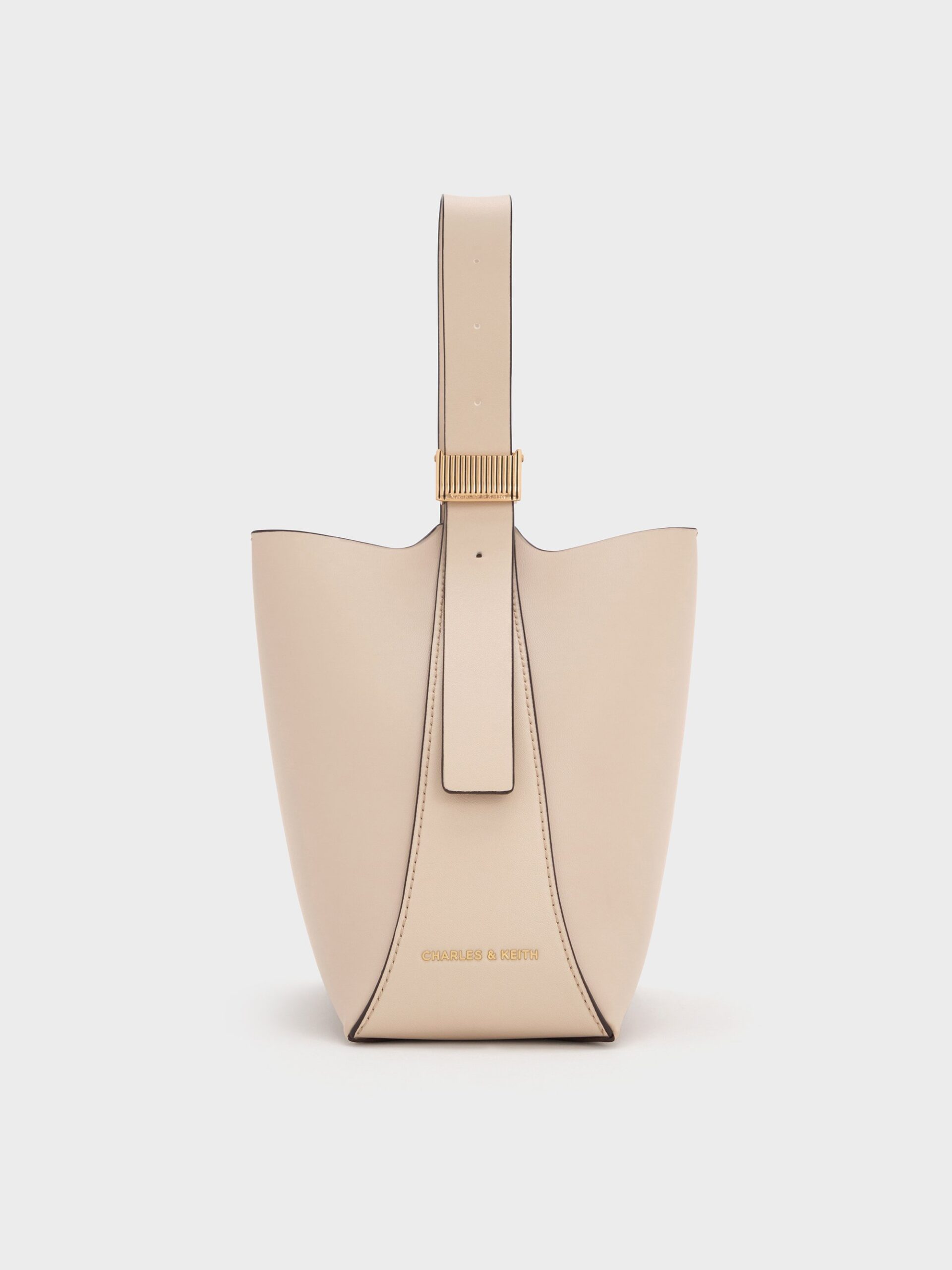 This Edna bucket bag in chocolate brown features a softly structued silhouette, an adjustable top handle and a magnetic closure. It also comes with an additional zippered pouch that can be used separately. Match it with tonal palettes for a composed, minimalist everyday aesthetic.
