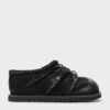 These Egan mules in black are made with nylon and feature puffy panelled uppers, lace ties, round toes and ridged flat soles. Use them to bring warmth and comfort to laid-back cold-weather edits.