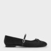 Drawing inspiration from the elegance of classical pointe shoes, these Mary Jane flats feature a classic round-toed silhouette and smooth satin finish that effortlessly evokes the imagery of a poised ballerina. In understated black, they will complement virtually everything, pulling any look together with ease. These Mary Jane flats also feature delicate ruched details as well as adjustable straps, ensuring a secure fit while adding a touch of feminine refinement.This product is made with water-based faux leather, which requires less energy to produce than regular faux leather. Pollution-free, non-toxic and free of harmful chemicals, it creates a smaller carbon footprint.