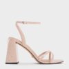 These Emmaline sandals in pink are made with patent leather and feature crystal-embellished chunky heels, crossover strappy uppers and elegant ankle straps. Wear them to complete feminine looks for date nights and evening events.
