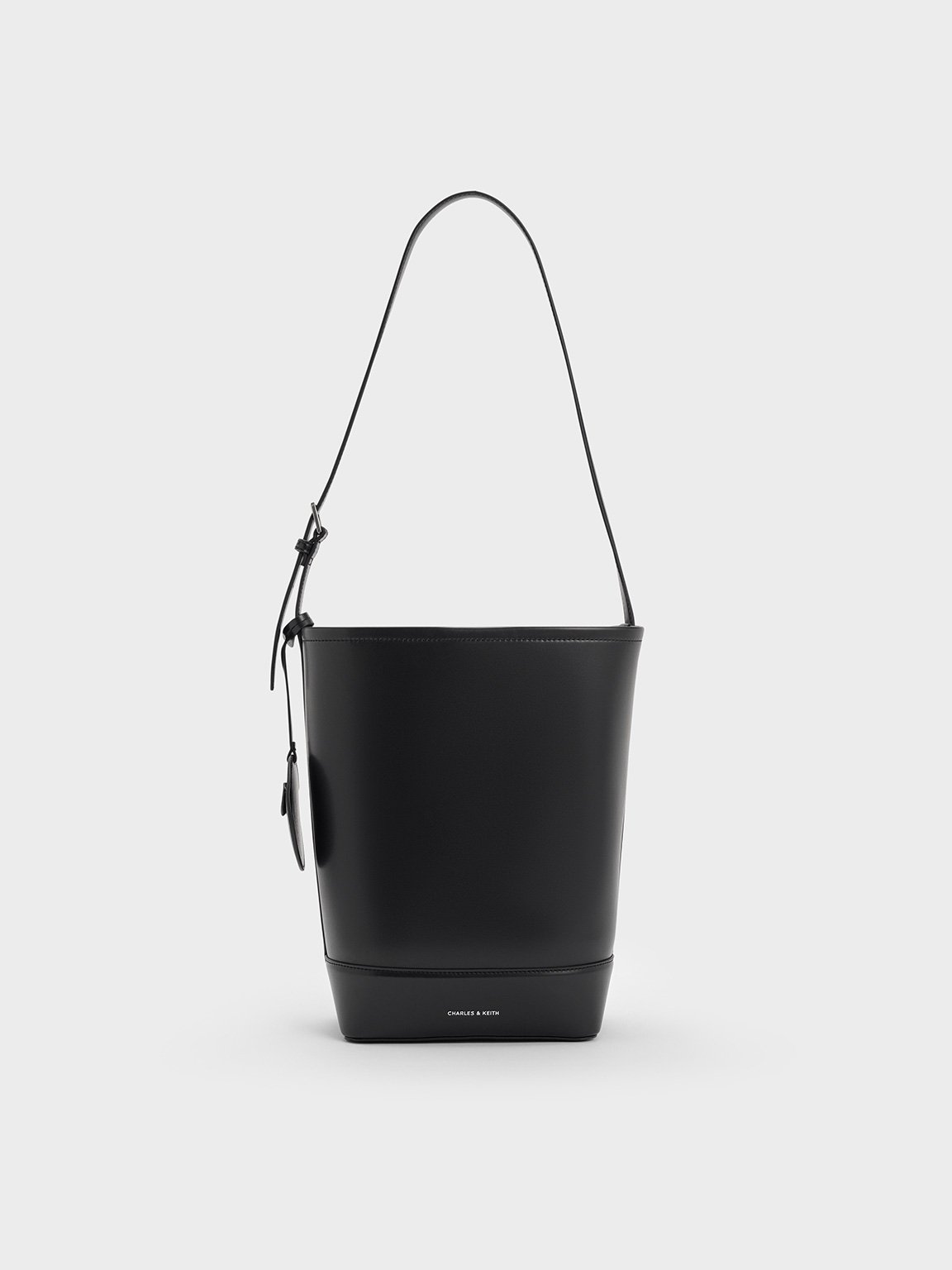 Featuring a classic, minimalist bucket construction, this Enola bag is a sophisticated everyday bag. Elegant in its simplicity, this chic carrier in versatile inky black is a functional piece that has a roomy interior and an adjustable strap for carryiing comfort. It comes with a detachable charm that can double as a keychain.