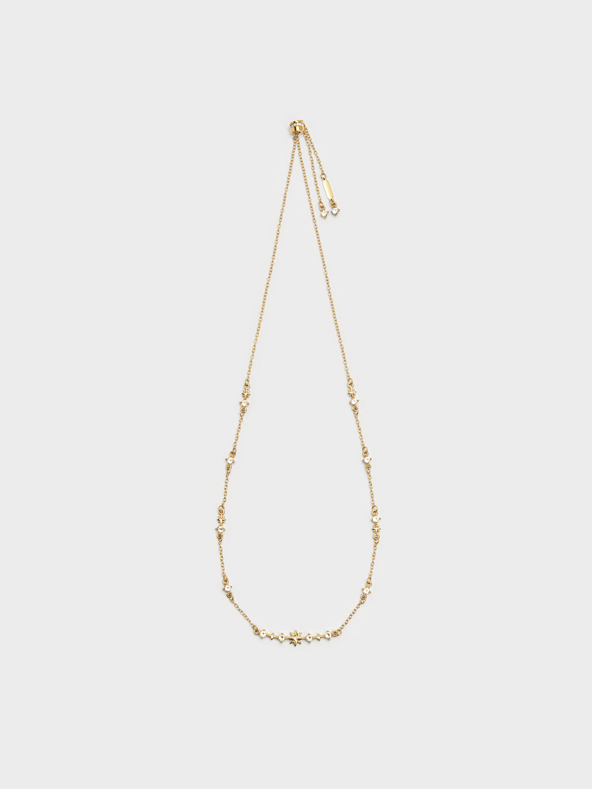 This Everest necklace in gold features sparkling crystal embellishments, striking star motifs and a sliding clasp that allows you to adjust it. Pair it with a V-neck t-shirt and your favourite jeans to create an elevated off-duty look.
