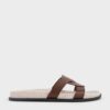 Polished up your casual outfits with these distinctive slide sandals. Faux-leather straps are interwoven to create a striking cut-out design that will add visual interest to any look. In warm brown, these shoes will complement most of your summer ensembles with ease.