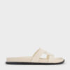 This pair of stylish slide sandals can be dressed up or down to suit the occasion. Faux-leather straps are interwoven to create a striking cut-out design that will add visual interest to any look. In clean white, these shoes will brighten up your summer ensembles and make them stand out.
