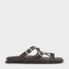 These toe-ring sandals in cognac are made with faux suede and feature an eye-catching crossover design, square buckled details and low flatform soles. Let them elevate your casual outfits with rich texture and striking details.Suede shoes require special care. For cleaning tips, please refer to our detailed guide here.