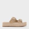 Wearing suede for the summer is made easy with these flatform sandals. The soft sand faux suede uppers and natural espadrille soles come together to create neutral-toned sandals that will put the finishing touch to any summer outfit.