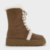 These boots in brown are made with faux suede, lined with faux fur and feature foldover cuffs, ridged flatform soles and rounded toes. Wear them to add plush texture and height to your winter ensembles.Suede shoes require special care. For cleaning tips, please refer to our detailed guide here.