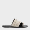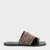 These toe-ring sandals in chalk are made with faux suede and feature an asymmetric design with ruched detailing, open square toes and flat soles. Use them to add visual interest to your relaxed weekend outfits.
