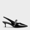 Charles & Keith – Patent Bow Crystal-Pearl Slingback Mary Jane Pumps