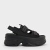 These sports sandals in black are made with elastane and feature an open-toe design, thick flatform soles and self-fastening straps. Wear them with cargo pants or jersey dresses to create comfortable casual looks.