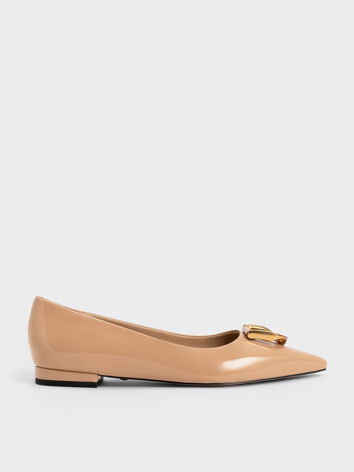 Chic and effortlessly stylish, these Gabine patent leather ballerinas are classy and sophisticated. From the timeless ballerina silhouette and classy pointed toes to the match-all nude finish, these flats will slot seamlessly into your style rotation. Featuring a genuine patent leather finish for an irresistibly glossy shine and the iconic Gabine buckles, these shoes will cement your status as a tastemaker.
