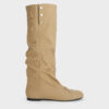 These Gael knee-high boots in beige are made with twill and feature studded details, slouchy shafts, rounded toes and bow details. Use them to bring a tactile, grounded element to feminine midi dresses.