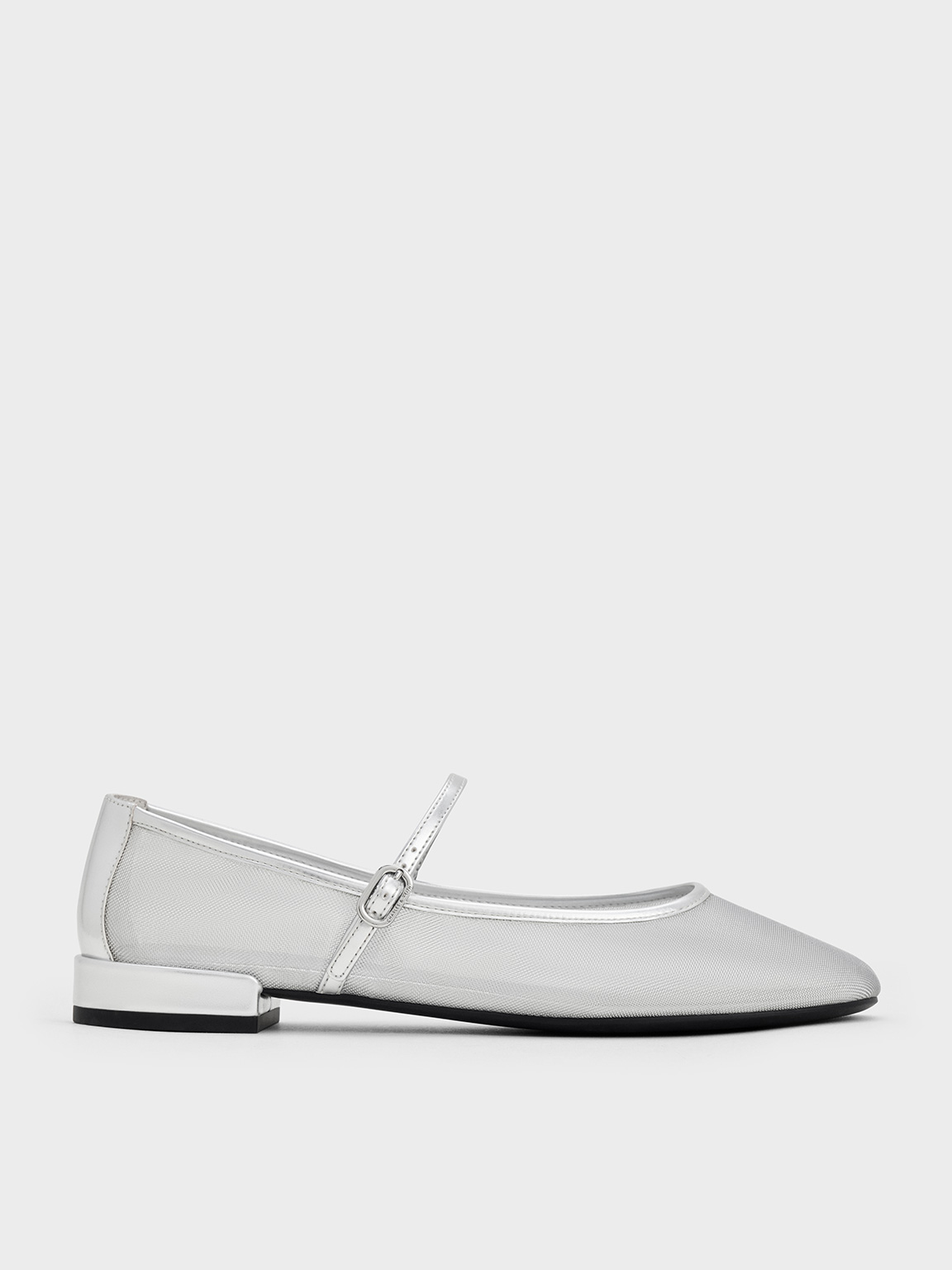 Incorporate metallics into your wardrobe with these Gertrude Mary Jane flats. The translucent mesh uppers offer a subtle way to wear metallics, making this pair a truly versatile option. Featuring shiny silver-tone stitching along the toplines, they will stand out beautifully against your everyday outfits. Set on low block heels, they offer a flattering lift as well.