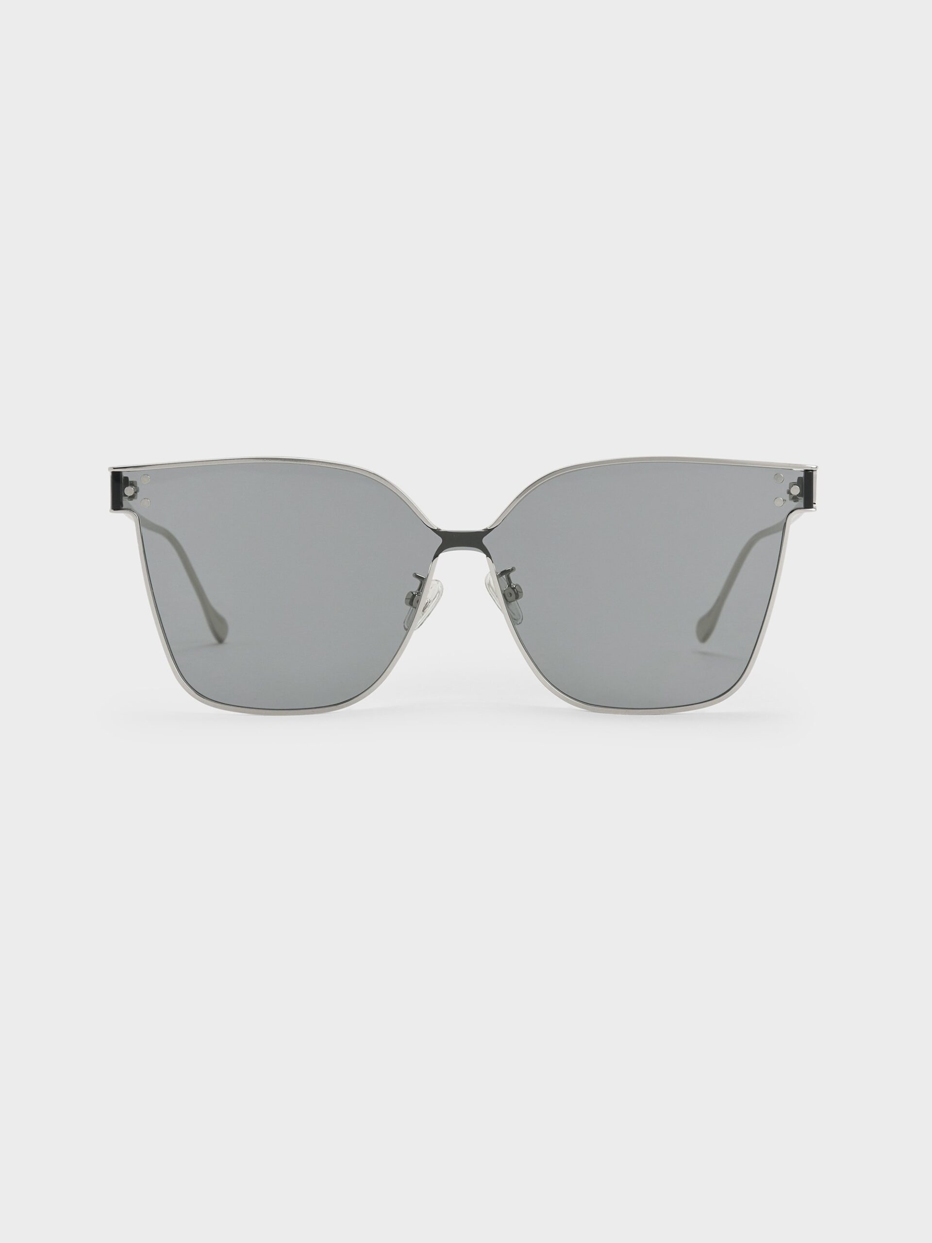 These Ginny sunglasses in silver feature silver metal rims, flattering butterfly-shaped frames and dark tinted lenses for a classic finish. These sunnies are perfect for achieving that chic and effortless cool-girl look.