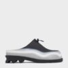 This item is part of our exclusive collaborative collection with PH5, an innovative and fashion-forward knitwear brand based in New York. With a convenient slip-on design, these mules are comfortable and statement-making at the same time. Featuring green-and-white gradient streaks that add visual interest to the white uppers, this pair is adorned with drawstring details that give them a utilitarian appeal.