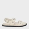 These slingback sandals in chalk feature grommet-studded crossover straps, softly rounded toes, and adjustable buckled back straps. Let them tie together smocked tops and denim skirts to create stylish and practical vacation looks.