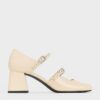 This product is made with at least 20% sustainable materials by weight. CHARLES & KEITH uses recycled, degradable, organic, and water-based materials in our eco-conscious collection.With a distinctively edgy aesthetic that centers around the grommet straps and metallic accents, these Mary Jane pumps give the classic shoe style a refresh. The finish give the design a cool yet versatile appeal. Set on 7cm block heels, they offer a height boost while the attached straps across the instep and the ankles are provide a comfortable and secure fit.