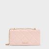 This Hazel wallet on chain in blue features a playful gingham pattern, a classic rectangular silhouette, a top handle adorned with side-bow details and a push-lock closure that opens up to multiple inner compartments. Carry it with casual dresses or denim looks for a charming accent that feels lighthearted yet polished.