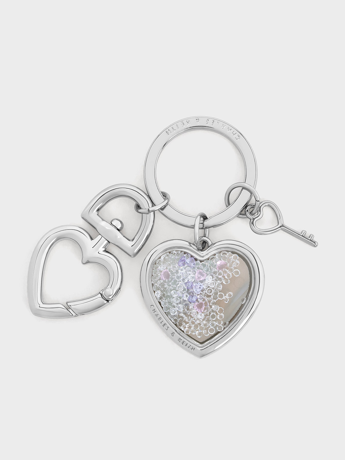 This heart lock crystal keychain in silver will add a touch of understated elegance to your outfit. The keychain boasts a floating locket adorned with mini gems, creating a mesmerising effect, and secures effortlessly with an adorable heart-shaped push-clasp closure.