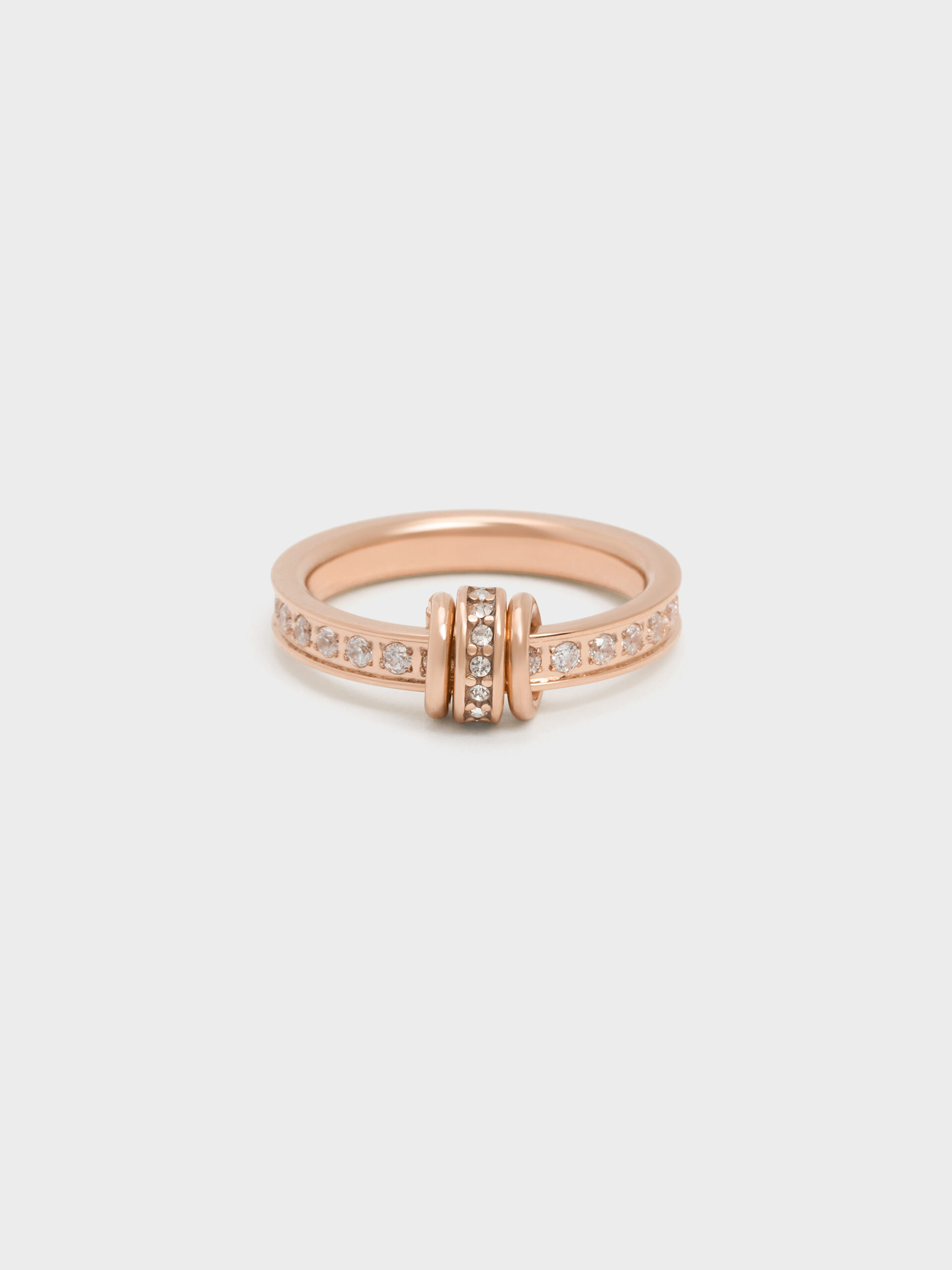 This Hermione ring in rose gold is embellished with crystals and features an interesting design — three tiny movable rings are threaded on the band. It is perfect for adding a touch of sparkle and movement to your everyday edits.