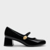 Featuring a glossy patent finish, a rounded square-toed silhouette, and sturdy block heels, this pair of Mary Janes has all the makings of a forever classic. Whether you are headed to the office or a formal evening event, these shoes will rise to the occasion effortlessly. For extra style points, the brass-toned accents on the straps add a hint of vintage charm.