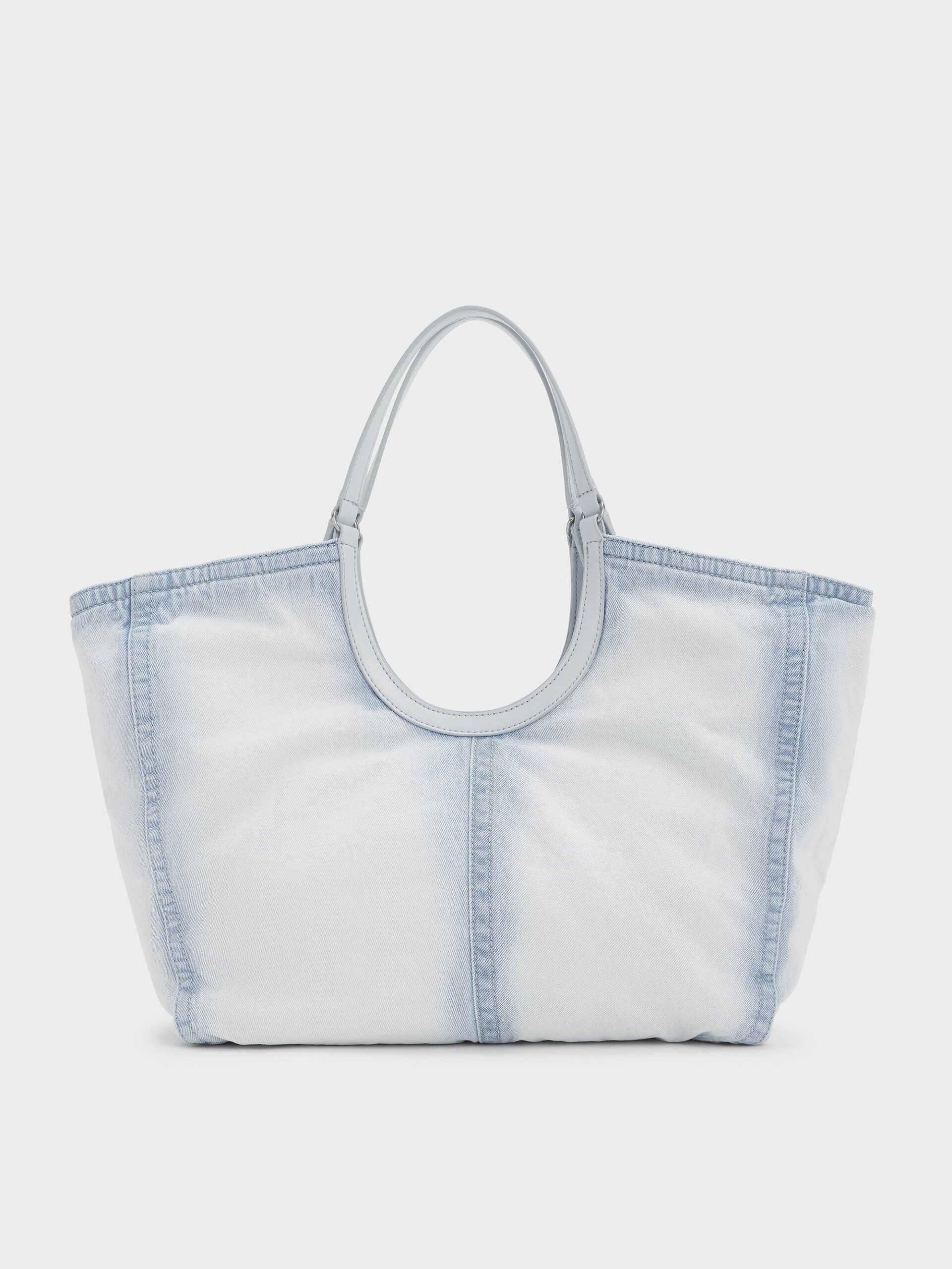 Featuring a light-wash denim finish that enhances its casual aesthetic, this tote bag will effortlessly complement any outfit with flair. Opening up to reveal an extra-roomy interior, It can accommodate all your daily essentials and more. Carry it by the double handles or with the longer, non-adjustable strap — either way, the result is stylish.