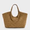 This Ivette shoulder bag in sand is made with recycled suede and features a woven finish and curved silhouette. Use it to add textural interest to sharp tailored looks or complement sleek neutral-tone separates.Recycled suede requires a little extra care. After each use, gently brush the surface in one direction with a soft brush to remove dust and dirt. For stubborn stains, lightly dampen a cloth with a mild cleaning solution and gently rub the fabric until the stain is gone.