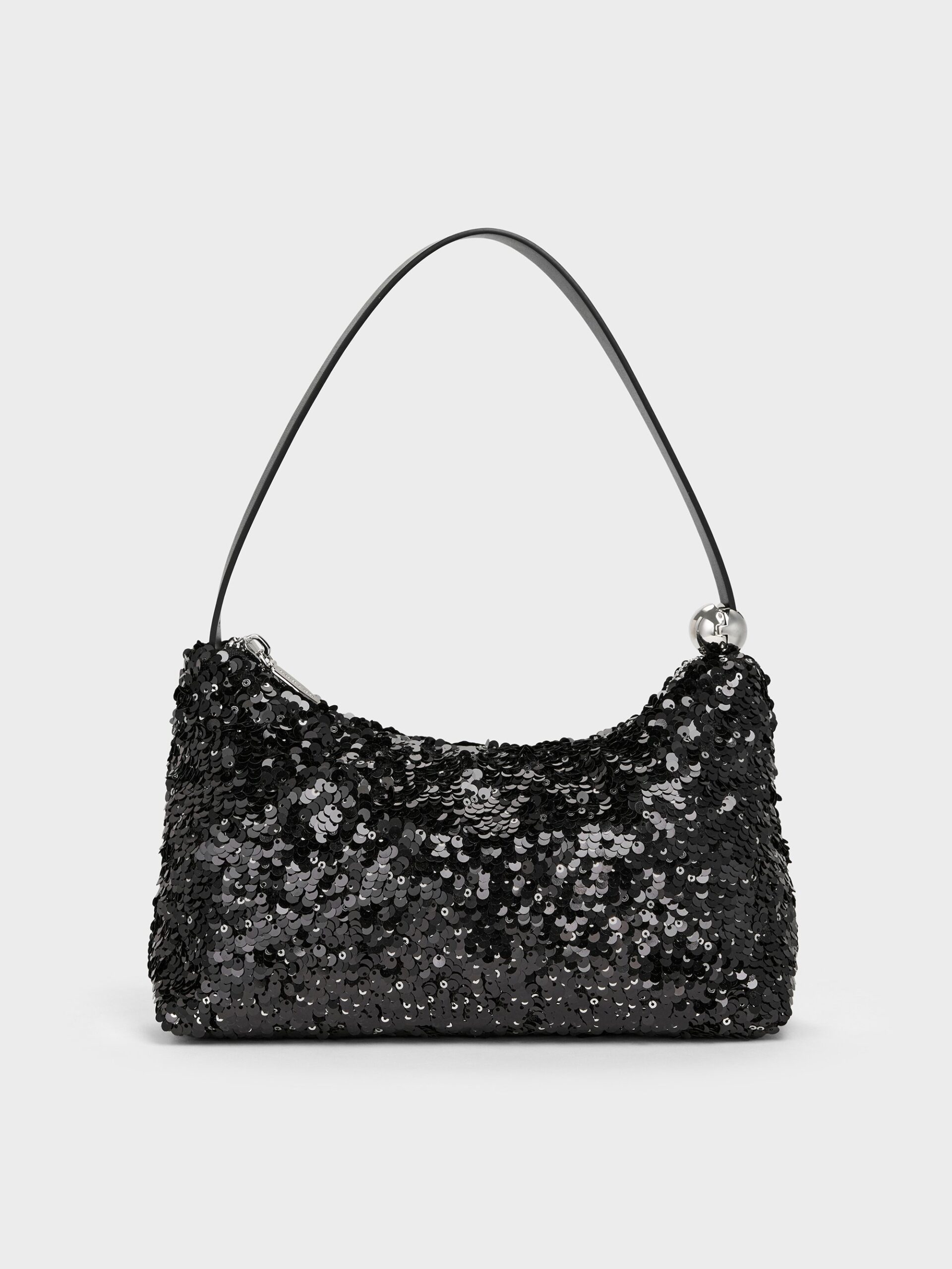 This Jesmyn bag in black features all-over sequin embellishments and a two-way strap design that allows it to be carried as either a shoulder bag or a clutch. Let it complement bold special-occasion outfits with their outstanding design.