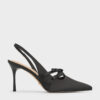 The prim pointed-toe silhouette of these Jessy slingback pumps is adorned with bows on the front for a feminine touch. Versatile in black, this pair will pair effortlessly with most outfits. Sitting on stiletto heels, they will give you a flattering stature boost. This product contains recycled material.
