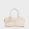 Embrace your feminine yet edgy side with the Kadee bowling bag. The top-handle style is given a grungey look with a ruched design and a shiny pink finish. Complete with a bow charm, it will be a standout addition to your wardrobe.
