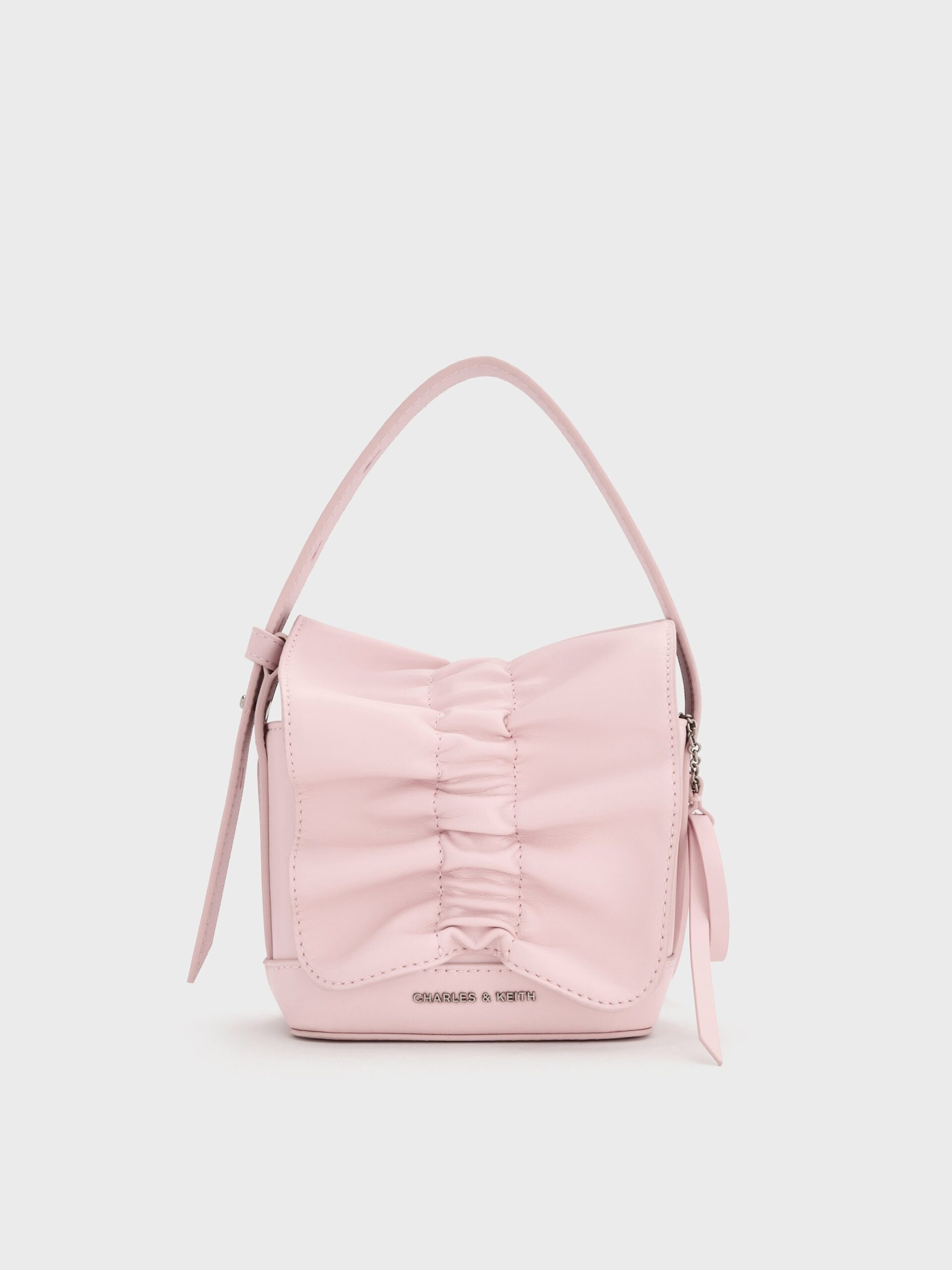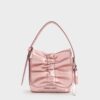 Channel the soft girl aesthetic with this mini bag, featuring a cotton candy pink finish and a tastefully ruched flap. A bow bag charm enhances its feminine elegance, while the detachable shoulder strap offers versatile styling options.