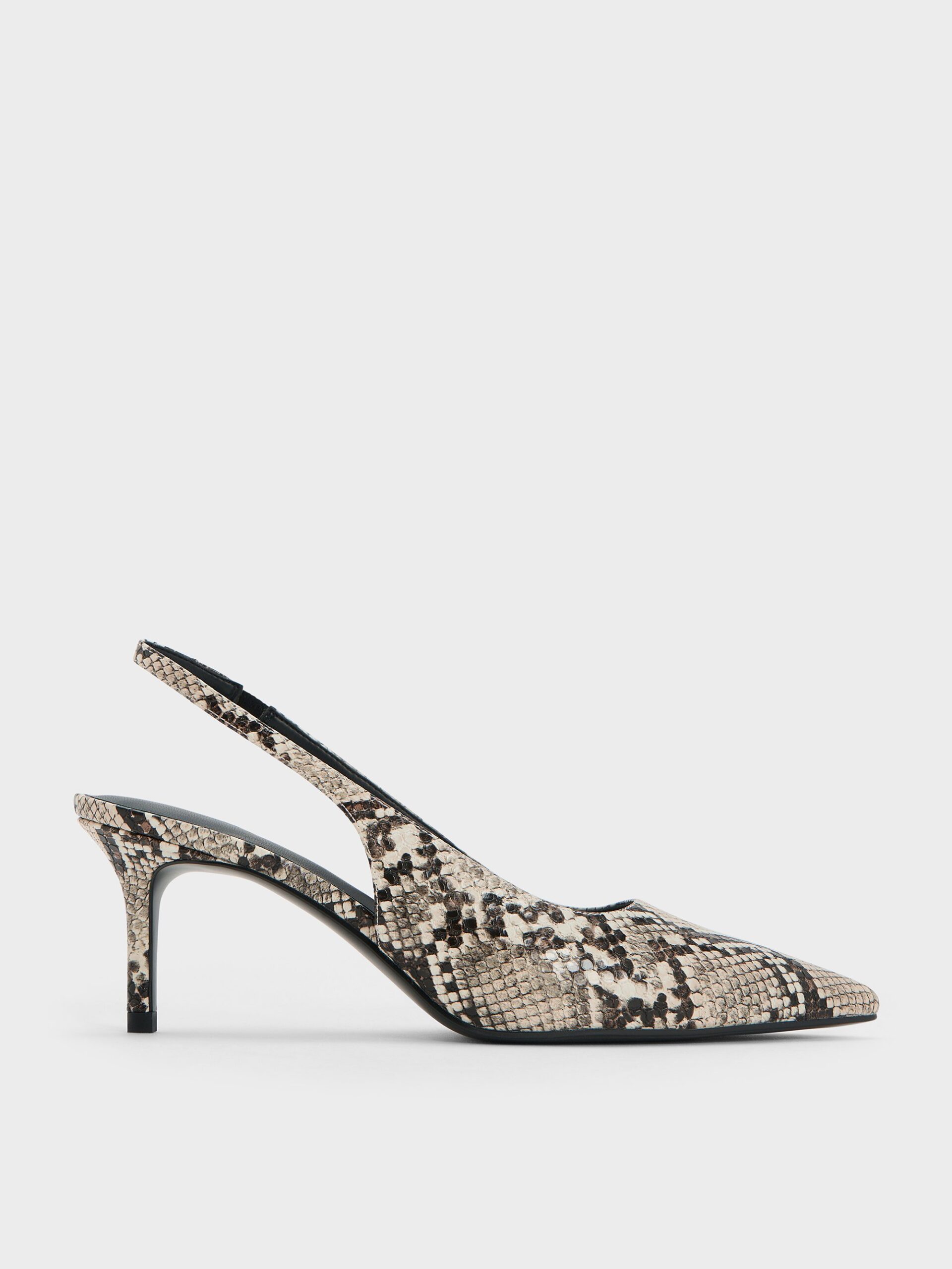 Embrace your wild side with these pointed-toe slingback pumps, featuring an alluring snake-print finish. Exuding exotic elegance, they will elevate any ensemble while remaining versatile enough for everyday wear.