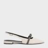 These Kaleen slingback flats in black feature covered pointed toes with contrasting woven bows across the insteps, adjustable buckled slingback straps and low stacked heels for comfortable all-day wear. They will add subtle visual interest to any outfit.