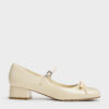 These Kelis Mary Jane pumps in beige feature charming rose-bow details, low block heels, covered round toes and slim adjustable straps. Wear them to add a feminine touch to both your workday and weekday edits.