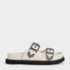 Buckle up with these slide sandals, featuring hardware adorned with eye-catching western motifs that will allow you to dip your toes into the current cowboy trend. These buckles feature a burnished finish that exude rugged elegance, further accentuating the aesthetic. Complemented by a dark brown finish that is just as elegant as black, they promise effortless everyday style and endless versatility.
