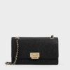 A subtle texture can elevate your outfits, and the Kora moon bag demonstrates this. The croc-effect texture accentuates the soft curves of the half-moon style, giving it a timeless elegance that is still distinctive in character. To add a touch of shine to the all-black finish, the shoulder strap features chunky chain accents. The Kora also opens up to a generously-sized interior, so it will fit the essentials while tucking neatly under the arm.