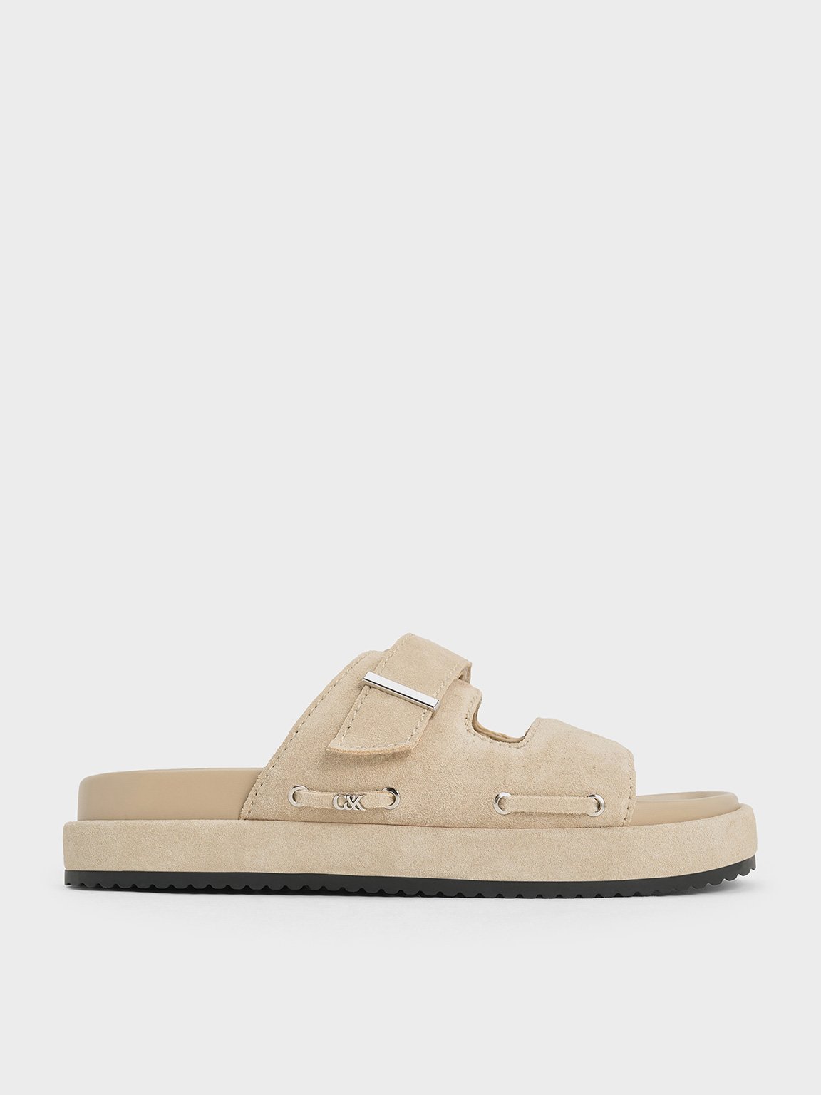 Made with beige suede, these Kori sandals has a luxurious aesthetic that elevates the casual shoe style. Designed for maximum comfort, they feature soft, thick soles that would cushion your feet, making them fabulous everyday shoes you can wear all day.