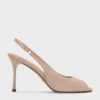 These Kyra heels in taupe are made with genuine suede and feature thin stiletto heels, feminine peep-toe details and adjustable slingback straps. Their plush texture will add a luxurious element to your glamorous evening looks.Suede shoes require special care. For cleaning tips, please refer to our detailed guide here.