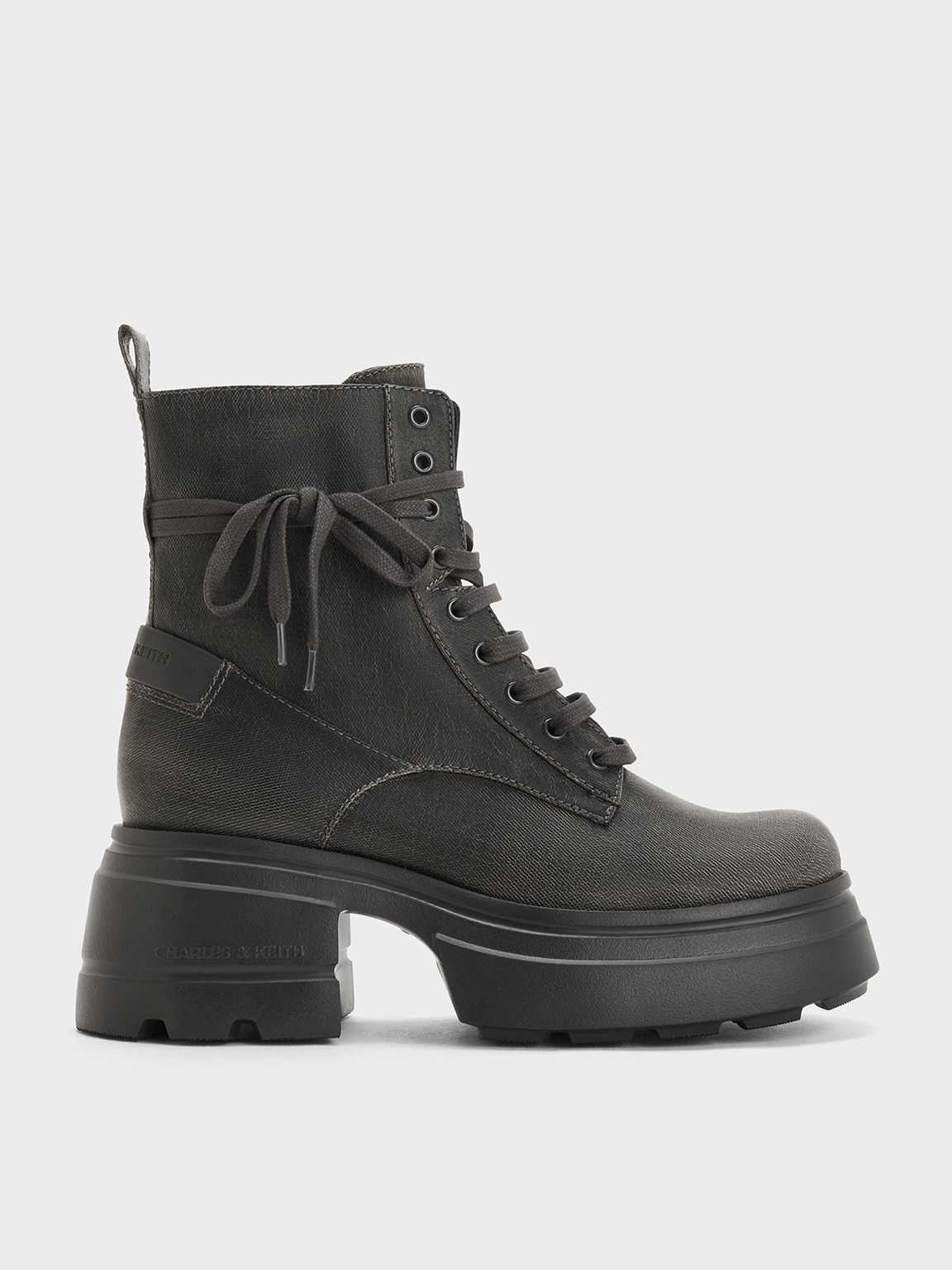 A pair of versatile ankle boots are a must-have for the fall-winter months — this pair in edgy dark grey will be a great addition to any shoe collection. Sitting on thick platform soles, these street-chic shoes provide a comfortable stature boost. Their ridged heels also promise a steady stride. The classic lace-up closure will let you find your perfect fit and keep these stylish boots securely on your feet all day.