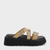 These Laine flatform sandals in sand are made with faux suede and feature strappy uppers with buckles, thick ridged soles and open round toes. Use them to introduce soft texture to casual, off-duty outfits.