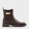These Lando Chelsea boots in dark brown feature metallic buckles, a glossy finish and sturdy block heels. Use them to add a hint of refined edge and polish to casual, off-duty outfits.