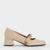 These Lando Mary Jane pumps has a two-tone finish consisting of chalk uppers and dusty-pink faux-suede straps. They also feature metallic buckles, block heels and rounded square toes. Pair them with minimalist separates to create effortlessly stylish office outfits.