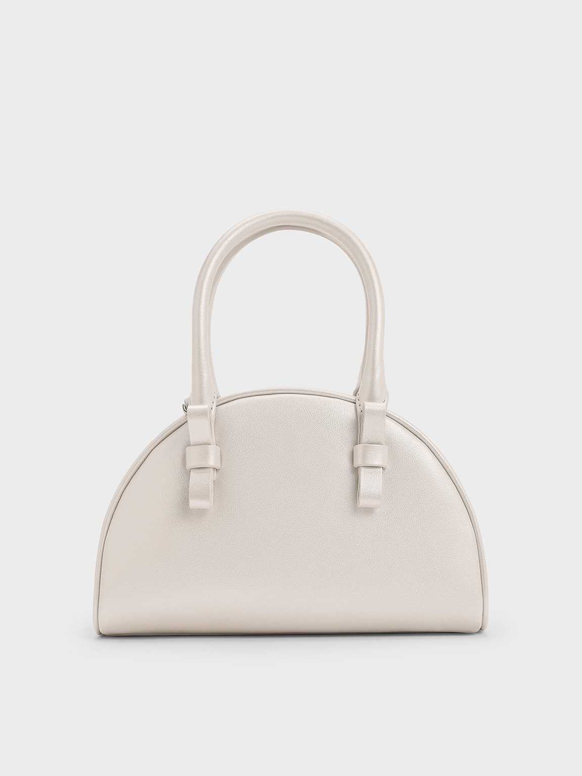 The timeless charm of the bowling bag shines through in this design. The white finish highlights the clean, pristine appeal of the half-moon shape, making it an elegant accessory for any occasion. Complete with a detachable strap, you can either carry this in hand or sling it on the shoulder.