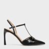 A great pair of everyday shoes will effortlessly tie any look together. Case in point: our leather T-bar pointed-toe pumps. Featuring subtly curved heels and a glossy black finish, they will add a touch of sleek elegance to your ensemble. The graceful T-bar design boasts refined charm, coupled with pointed toes that create the illusion of longer legs. Perfect for looking polished and put together in an instant, these T-bar pumps will take the stress out of getting dressed for work in the mornings.