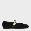 These thong sandals in black are made with genuine leather and feature a chic T-bar design, striking metallic accents, buckled ankle straps, and softly rounded toes. Let them complement cool off-duty outfits with their versatility and everyday elegance.