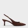 Featuring faux suede uppers, these Leslie slingback pumps will add an eye-catching element to any look. In rich dark brown, they are also a great alternative to black pumps. Set on low kitten heels, they offer a subtle lift without compromising comfort.