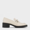 Classic with a twist, these loafers are made with recycled faux leather, making them great for the fashion-lover who is looking to make more thoughtful choices. Featuring a classic round-toed silhouette, low-blocked heels and a versatile chalk finish, these shoes will complement most outfits and elevate any look with the subtle shine of their gold-toned details.