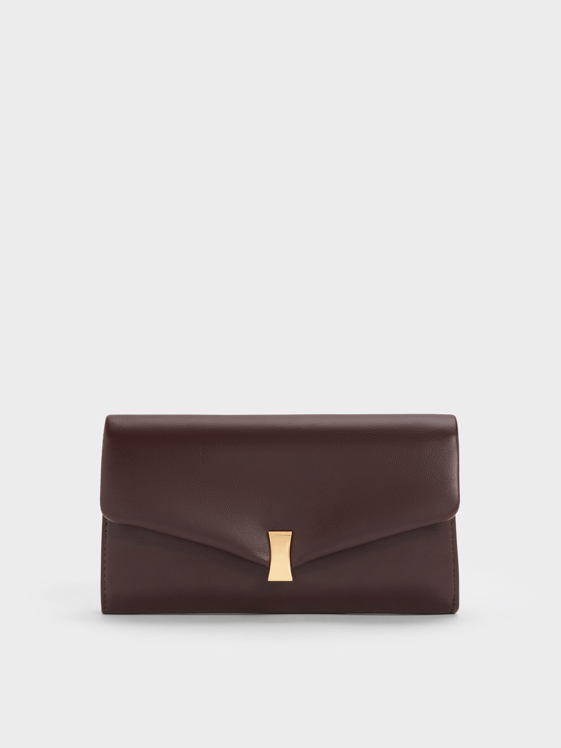 This Lilibet long wallet in plum features a striking metallic buckle, an elongated body and a detachable chain strap. Use it to bring stylish functionality and a touch of rich colour to your daily routine.