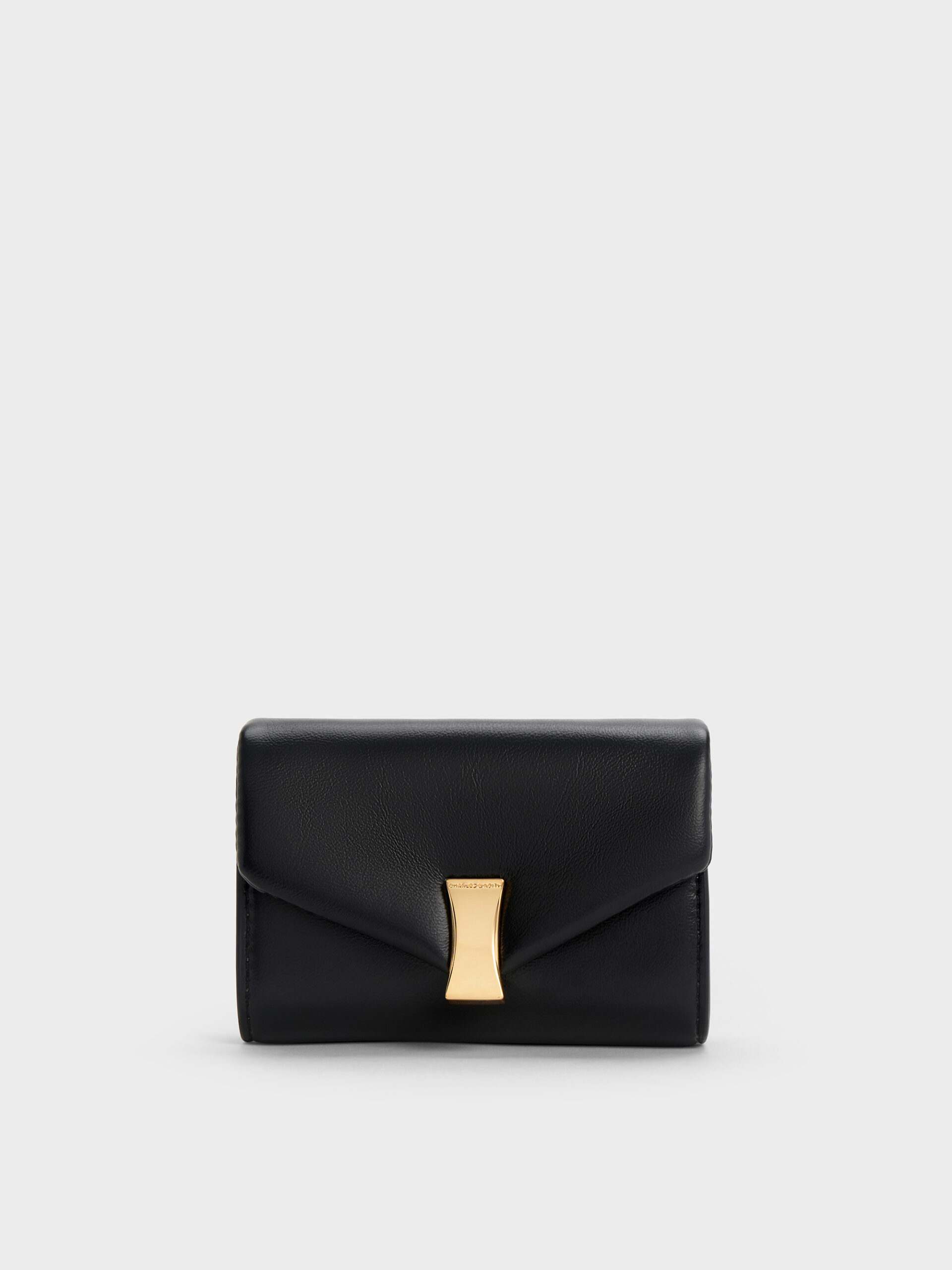 This Lilibet wallet in black features a metallic buckle, a detachable chain strap and an envelope construction. Functional and stylish, it will fit easily into your everyday bag and elevate your daily routine.